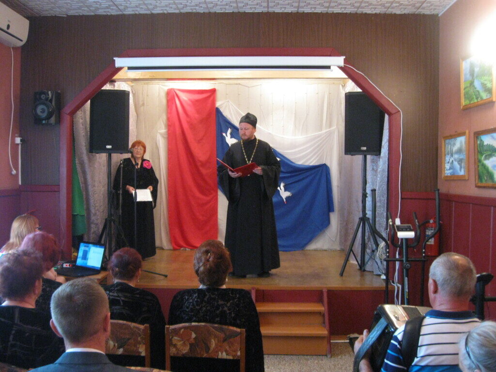 Первым было предоставлено слово отцу Тихону, который зачитал обращение митрополита Воронежского и Лискинского Сергия в День памяти и скорби.