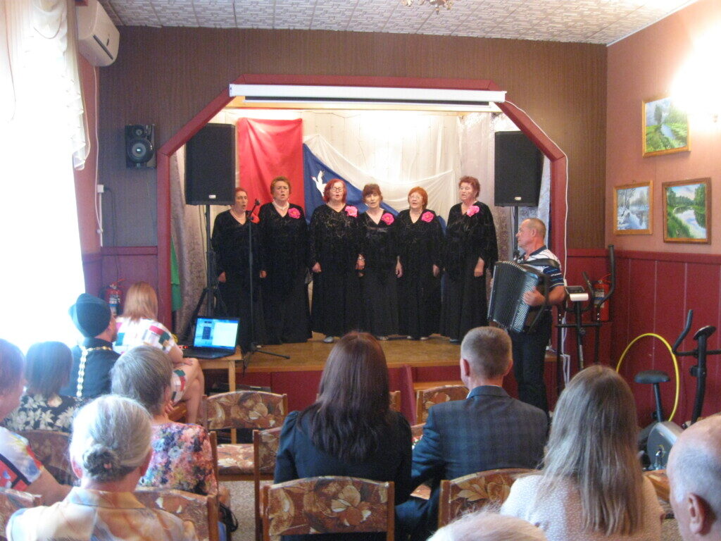 Далее перед собравшимися выступили солисты районного Дворца культуры «Юбилейный» и вокальный ансамбль ветеранов «Родные напевы». Они исполнили военно-патриотические песни.